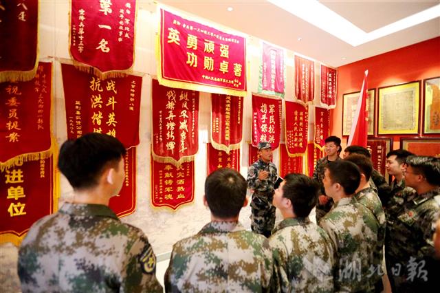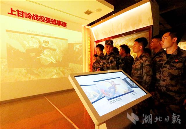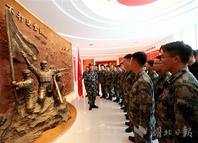 3月13日,武汉市江岸区人武部组织湖北工业大学工程技术学院优秀退役大学生,来到95969部队上甘岭特功八连荣誉馆参加学习。此项活动旨在激励大学生学习英模,缅怀先烈励志初心,踊跃参军报效祖国。(湖北日报全媒记者张鸿 通讯员 吴吉良 摄)