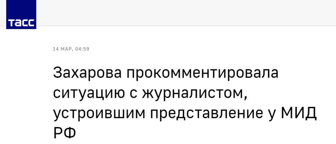 塔斯社:扎哈罗娃评论记者在俄外交部附近进行表演一事