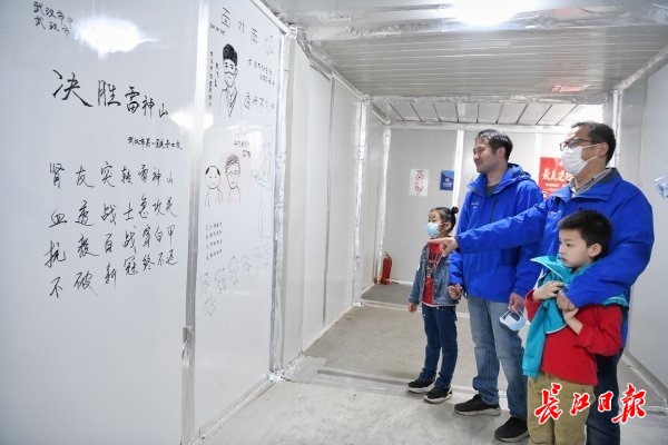 据统计,当天,有近四成医护人员都带来了自己的爱人和孩子,一家三口甚至一家四口携手参观。大连医科大学第二附属医院护士刘薇带着丈夫和儿子参观后表示,接受到武汉赏樱的邀请后,孩子主动要来妈妈战斗过的地方看一看,没想到赏樱后的第二天就能再次来到雷神山医院,一家人都觉得这两天过得非常充实、精彩。