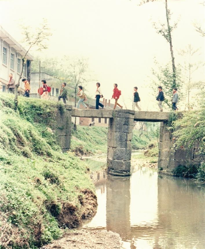 因冠英小学门前东流溪山洪暴发时,学生无法过溪上学,胡敌出资在溪上修建了一座石桥。后人为纪念胡敌,将此桥称为“胡敌桥”。(资料图片)