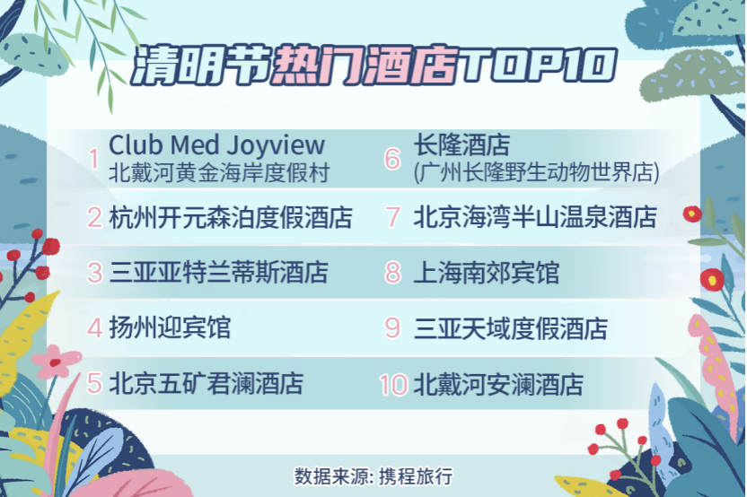 此外,数据显示,今年清明小长假酒店市场复苏形势喜人。其中,上海、北京、成都、三亚、杭州、南京、苏州、厦门、广州、武汉等一线及新一线城市更受消费者青睐。