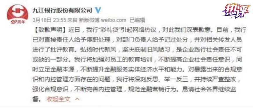 前几天九江银行的“彩礼贷”上了热搜,之后九江银行发布致歉声明,称已对直接责任人给予停职处理。“彩礼贷”的闹剧落幕了,但还有一些“奇葩贷款”没有消停。