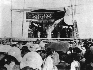 汉口露天戏台反映的是近现代武汉市民生活。19世纪末,汉口始有剧场出现,初称茶园。辛亥革命前后,一些专业唱戏的茶园,逐步改建、扩建,并改称舞台、戏院,1919年汉口新市场(后称民众乐园)建成后,年获巨利,随后各种戏院、舞台及综合性娱乐场所相继建立。
