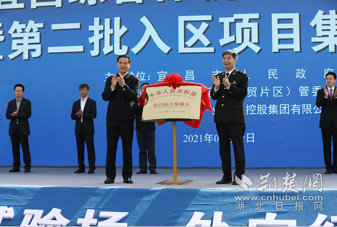 3月22日,宜昌综合保税区封关运营。宜昌市委副书记、市长张家胜与武汉海关关长杨杰一同为综保区揭牌。郑鑫 摄