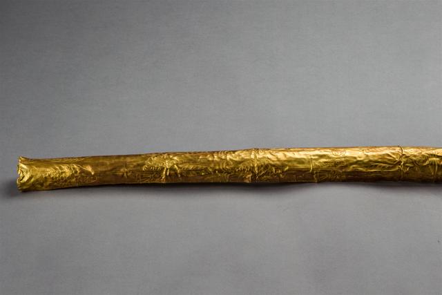 三星堆出土的金杖局部(资料照片)。新华社发(四川省文物局供图)