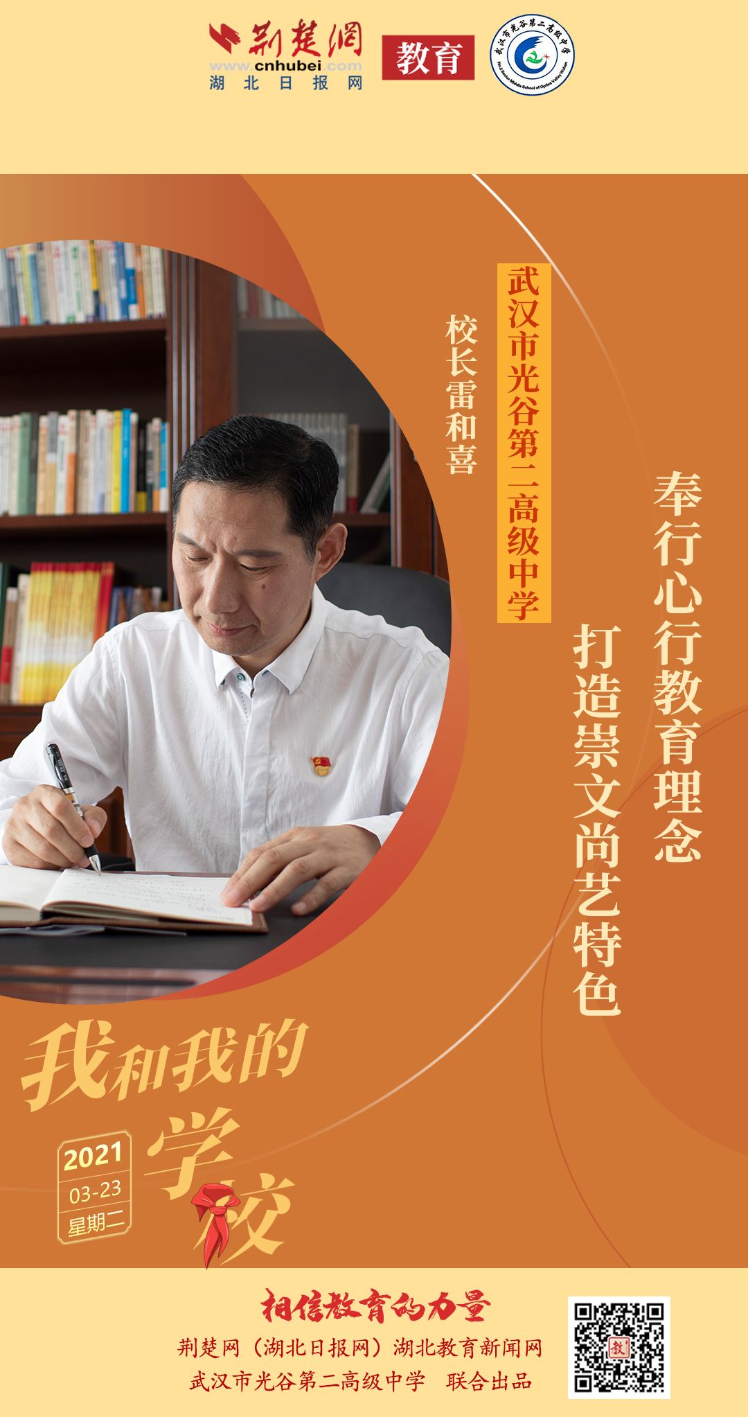 武汉市光谷第二高级中学校长雷和喜:光谷二高奉行“心行教育”理念,着力打造“崇文尚艺,多元赋能”特色。