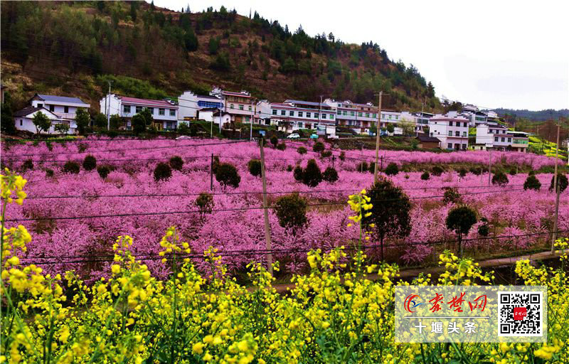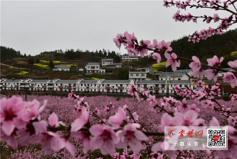 竹山县秦古镇大溪河村沿河两岸近500多亩果园里,30余万株桃树桃花盛开,3公里的桃林,远看如一片粉黛花海,整齐排列的白墙黑瓦的庸派小洋楼掩映的花海和青山绿水间,如一幅动人的山水画。(记者 周仑 通讯员 石濡华 陈泉良)