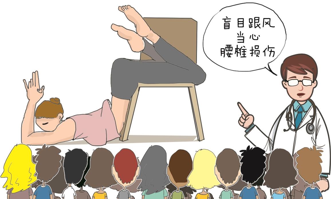 对此,武汉协和医院骨科副主任医师张波呼吁,爱美女性要慎重模仿。“观察这个动作,身体弯折最大的部位是胸、腰部,而这里恰恰是最容易受伤的部位。”张波说,胸椎本就活动度很小,像这样强行反向拉扯,如果平时没有进行柔韧性锻炼的人群,很容易导致软组织损伤,留下背部疼痛的后遗症。此外,如果模仿者合并有骨质疏松,极可能造成胸椎压缩性骨折,别因为一时好奇心酿成大祸。
