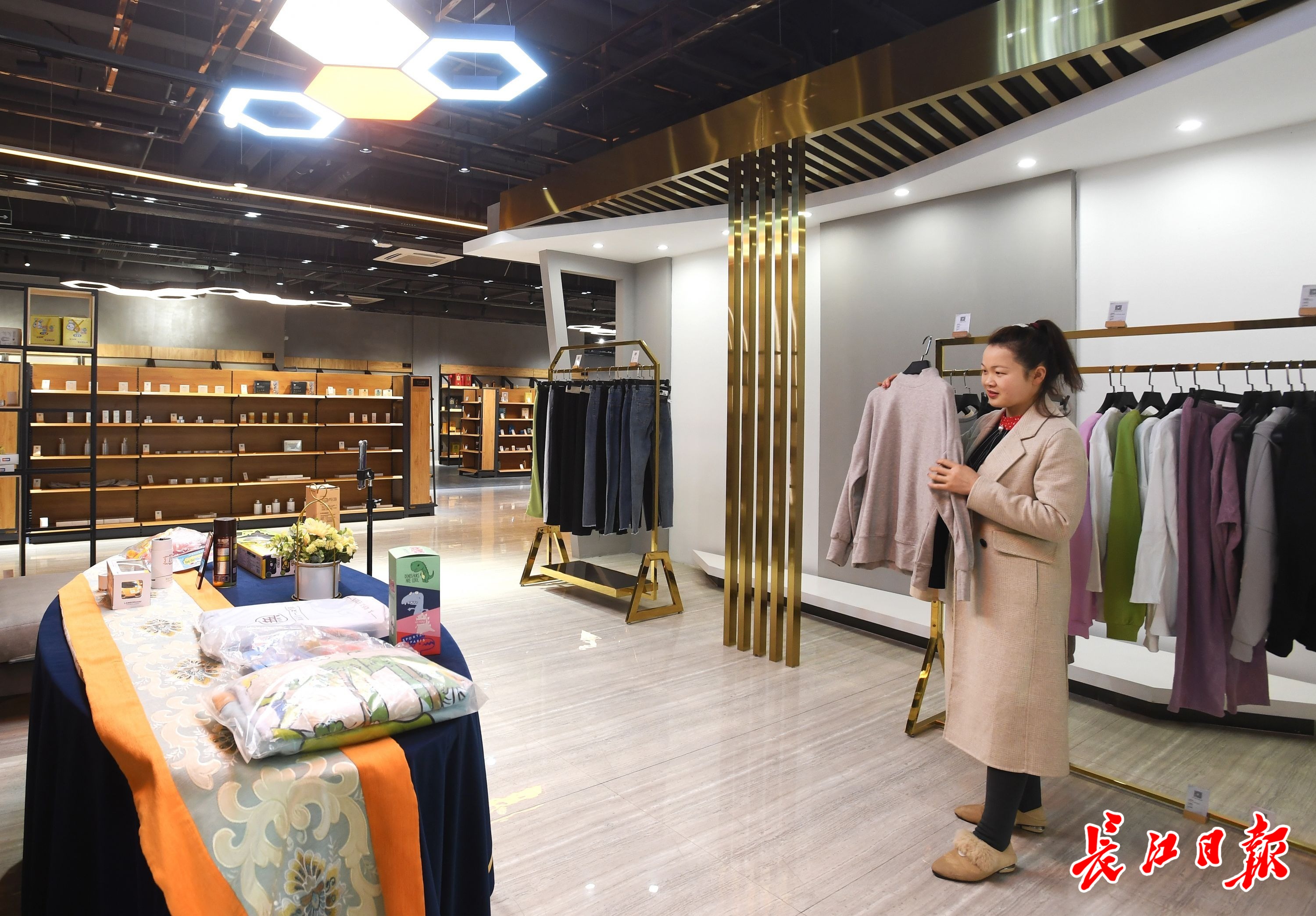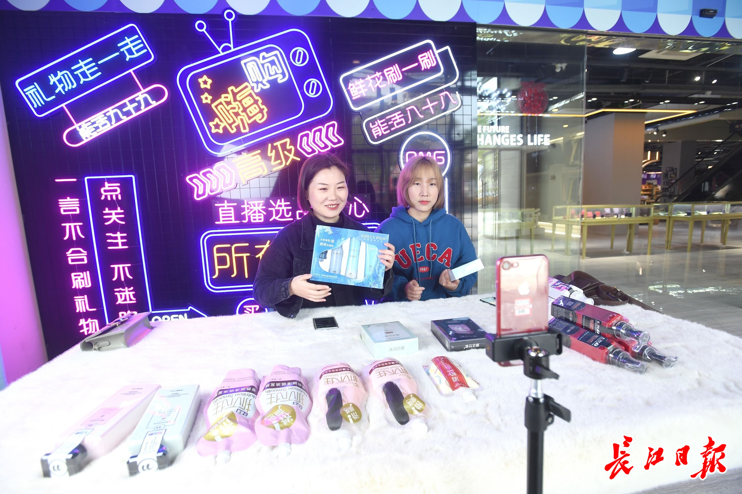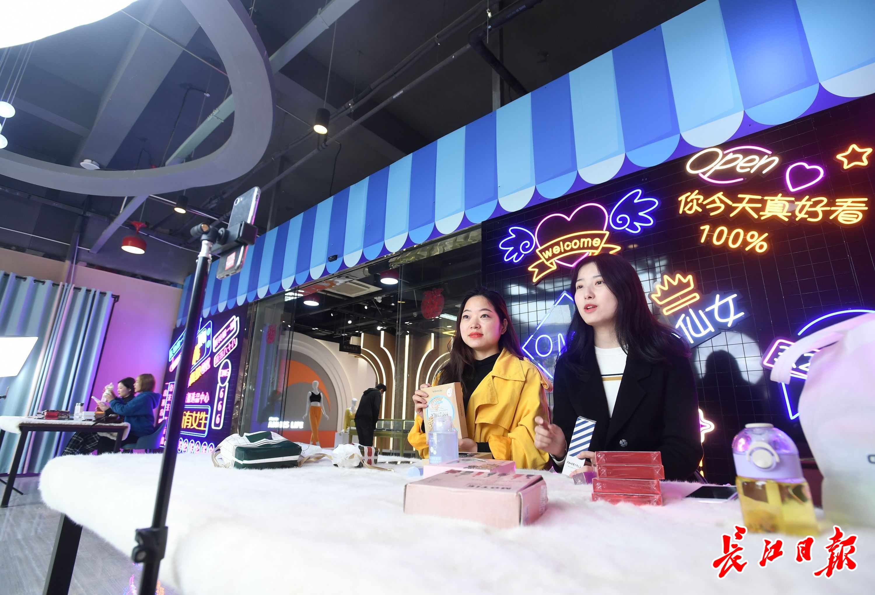 长江日报3月24日讯 亮白的补光灯、全新上架的网红爆款、靓丽的主播群体、精彩纷呈的线上秒杀……2021年3月23日中午,汉口北直播选品中心内,10多名主播全网同步开播,食品酒水、家居日用、美妆个护、服装首饰等一系列网络爆款产品更新上架,线上与线下同步热销。