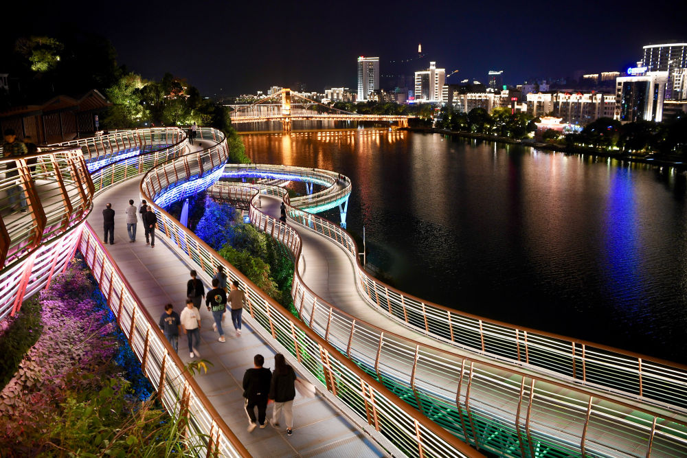 ↑2020年11月23日,市民和游客在沙县虬龙桥栈道散步休闲。