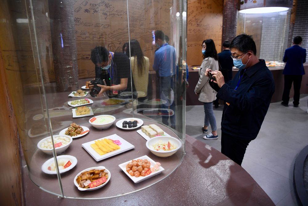 ↑2020年11月23日,人们参观沙县小吃民俗文化馆。