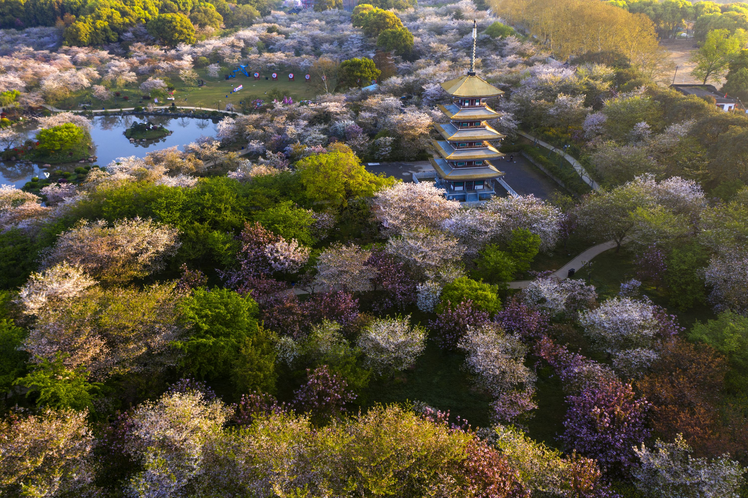 虽然经历了前期持续降水,今年东湖樱花园樱花更为“坚强”,风雨之后仍然生机勃勃绽放在枝头。东湖磨山景区导游童谣介绍,人们常说的樱花是中樱品种,盛花期为七天左右,今年比以往有所延长。此外,园内垂枝樱、郁金樱、御衣黄等晚樱品种正在盛开,晚樱品种主要集中在五重塔后。