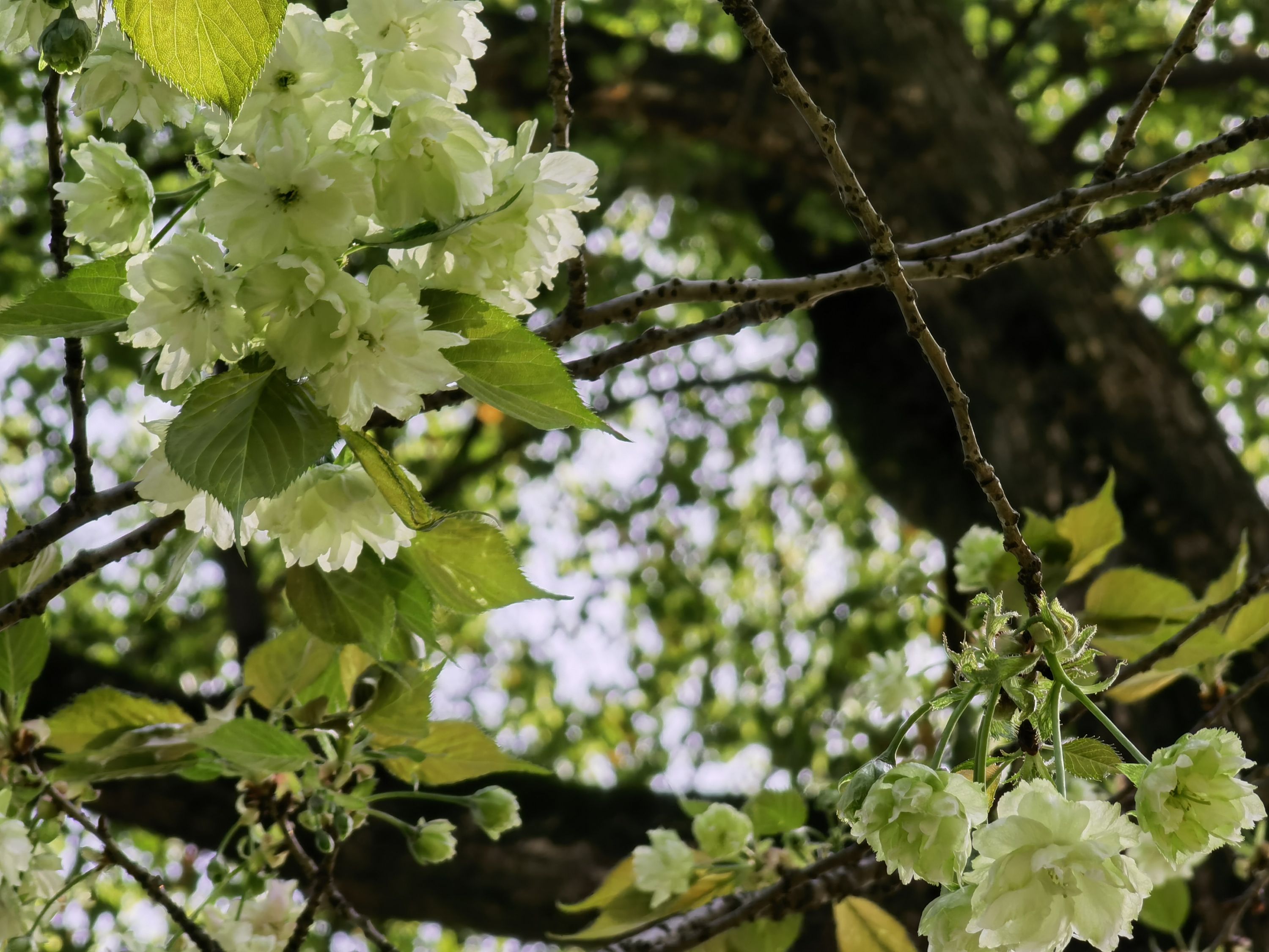 东湖樱花园内绿色樱花绽放,清新怡人。赵丽 摄