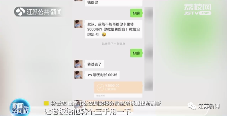 当天,嫌疑人房某又通过微信联系赵先生,称自己的微信没有绑定银行卡,现在急需要用钱,让赵先生先给他转3000元。当时赵先生也没细想,就直接微信转了3000元给房某。