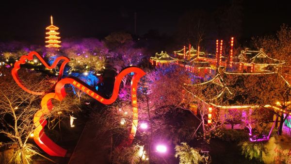流光溢彩的东湖樱花园夜景。赵丽 摄