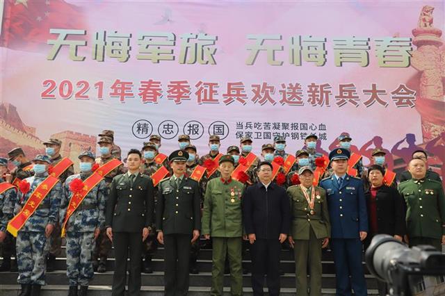 又是一年送兵季,正是青年报国时。3月25日,极目新闻记者从湖北省鹤峰县人武部了解到,湖北省鹤峰县举行2021年春季新兵入伍欢送大会,特别邀请了在抗美援朝战场上荣立战时二等功的张言礼老英雄、被授予“中国人民志愿军抗美援朝出国作战70周年纪念章”的朱立代老英雄、以及4名优秀复退军人参与此次欢送大会,同新兵家长们,一起为新兵们光荣参军“饯行”。