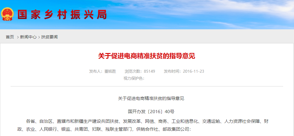 《关于促进电商精准扶贫的指导意见》