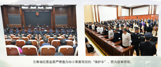 值得一提的是,中纪委对涉案的中管干部、云南高院原院长赵仕杰处分决定文件、“保护伞”受审画面等图片视频资料也在首次在网上展览馆中出现。