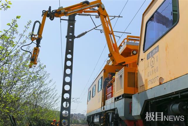 极目新闻记者从中国铁路武汉局了解到,这是武汉供电段刚刚引进的一款智能机械手,是最新研发成功的全新装备。它同时具备绝缘子清扫、危树砍伐等功能,经过了3年技术攻关和试装试用,这是它的第一次正式上岗亮相,只需一名操作人员远程操控即可完成。