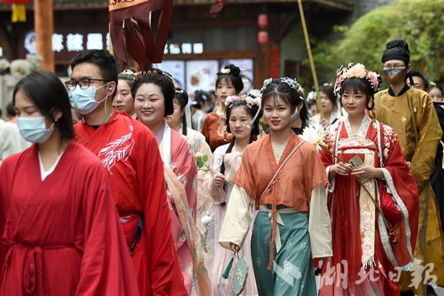 2021年3月27日,第二届汉口里花朝节在武汉园博园开幕。以春花为媒,以汉服为介,以文化会友,穿汉服游园赏花是汉口里花朝节的特有标识,同时在花朝节活动期间,园方还设置了汉服方阵、花神海选、汉服走秀、汉婚演绎、古风歌舞、汉服市集等多项游乐交流活动。