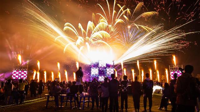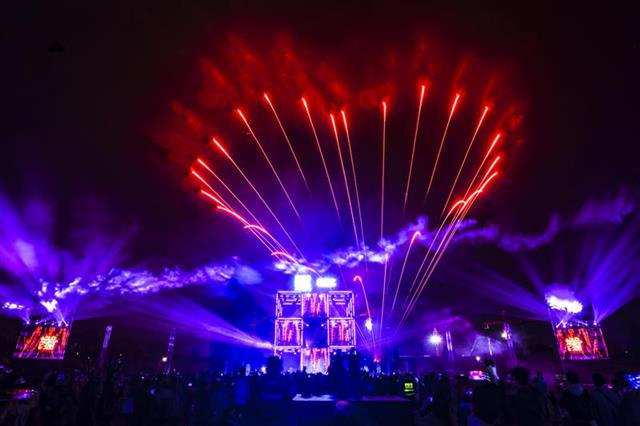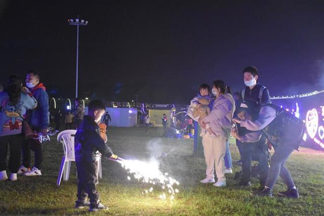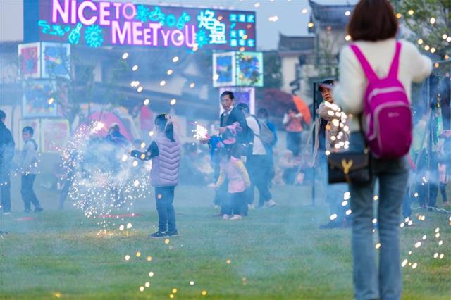 除了超燃的炫酷烟花开场秀和重磅焰火压轴秀,各种环节还设置了光影焰火剧场秀表演,穿插演唱、舞蹈、游戏等内容,来到现场的情侣可以体验一场万人烟花爱心表白;在活动现场的其他区域,游客还可以体验新颖潮流的次元打卡区、万人“正能量”狂欢空间、网红烟花体验大本营、美食市集等新奇有趣的项目;花海露营烧烤、非遗传统民俗表演,还有网红桥挑战赛、大型裸眼5D演出表演,都在景区精彩上演。