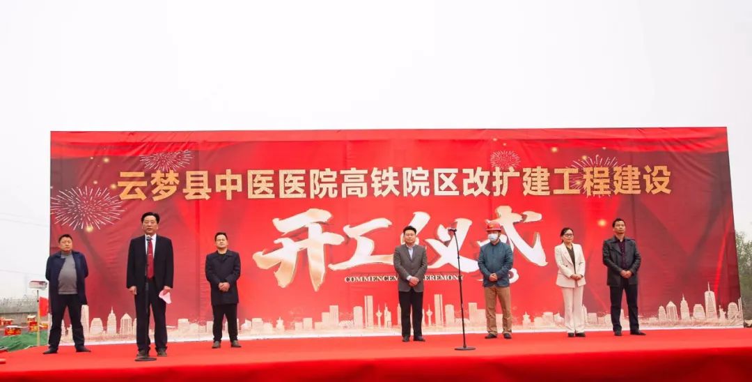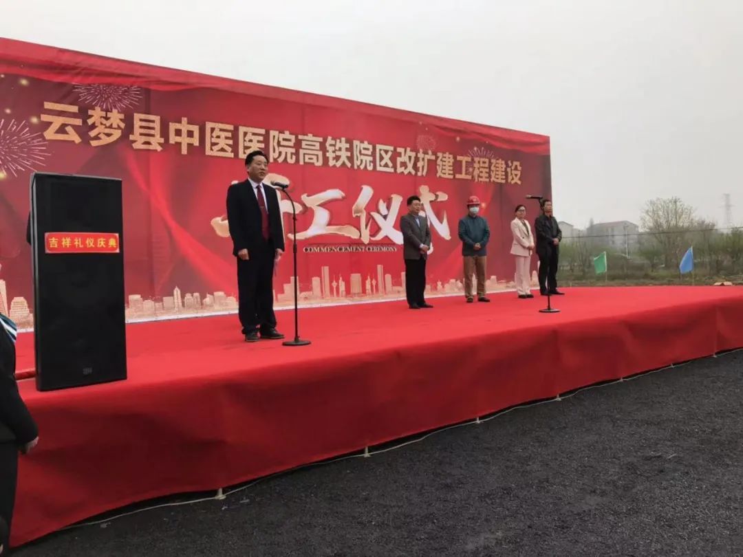 湖北长安建设集团公司负责人发表讲话,表示要建设高质量高标准的中医医院院区工程。最后,县领导段鹍鹏宣布:云梦中医医院高铁院区改扩建工程,开工!