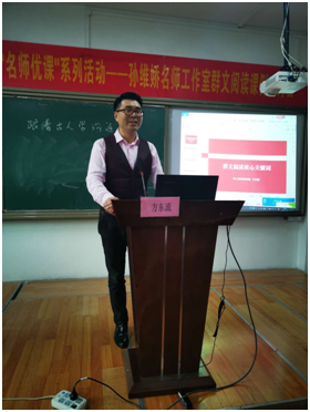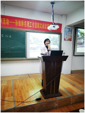 接着,省工作室主持人黄石八中孙维娇作了《核心素养背景下的群文阅读教学的现实思考》的讲座,讲座分别从什么是群文阅读,为什么要进行群文阅读,群文阅读的教学策略等几个方面作了深入全面的讲解。开阔了教师们的视野、凸显了群文阅读教学的价值和特征。