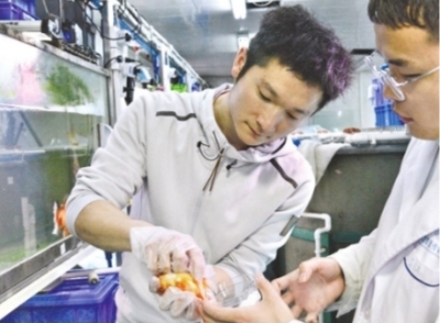 余鹏解释,金鱼一般是每年三、四月繁殖,如果要开展金鱼基因功能研究,至少需要繁殖三代,按常理得花两三年的时间。缩短金鱼成熟周期,并做到一年四季都能繁殖金鱼,一直是个科研难题。