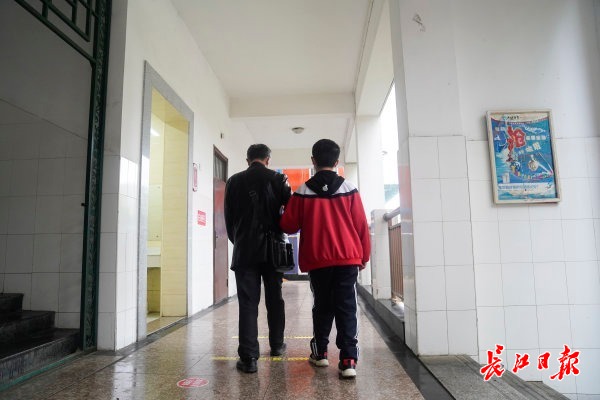 同学会帮助吴隆珠将吴限好送回教室。长江日报记者彭年 摄