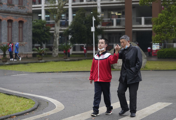 “学校专门给爷爷奶奶配了侧门钥匙,抄近路到博学楼,比从外面绕至少近一刻钟。”吴限好对于学校的照顾很是感念。无论在山鹰小学还是四初,学校、老师都给予了很多关怀,安排志愿者轮流帮扶,还提供了单独的洗手间,尽可能为他提供便利。
