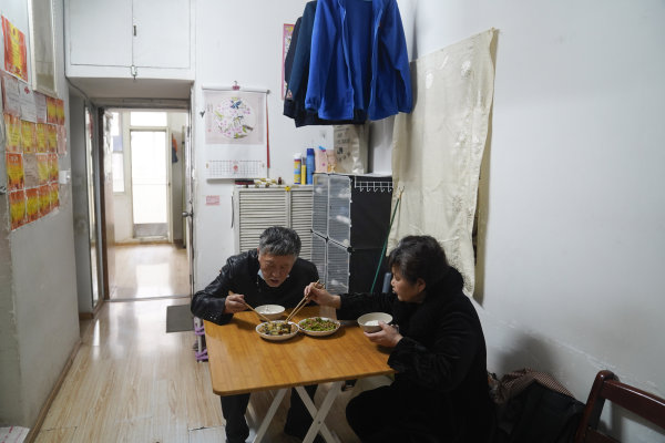 老人们在家里吃完中饭后,爷爷吴隆珠就马上把饭菜带给孙子。长江日报记者彭年 摄