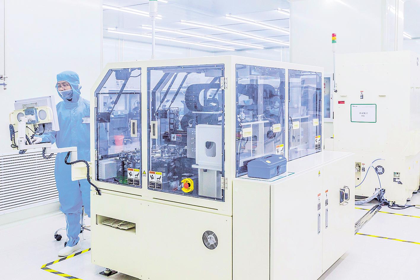 武汉锐科光纤激光技术股份有限公司,高功率半导体激光芯片封装产线正在生产。该公司专业从事光纤激光器及其关键器件与材料的研发、生产和销售,实现了国产大功率光纤激光器的开发及产业化。 (湖北日报全媒记者 梅涛 摄)