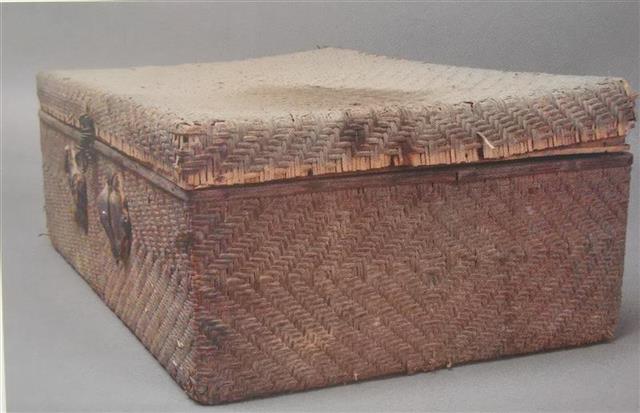 这口木胎藤面的木箱,长56厘米、宽38.5厘米、高20厘米。箱子的藤面有些损坏,工作人员告诉记者,这口箱子是当年贺协南在武昌和毛泽东一起工作时用过的,后来成为贺家女儿的嫁妆。1979年,贺协南烈士的女儿贺君杰将其捐赠给武昌农讲所旧址纪念馆。
