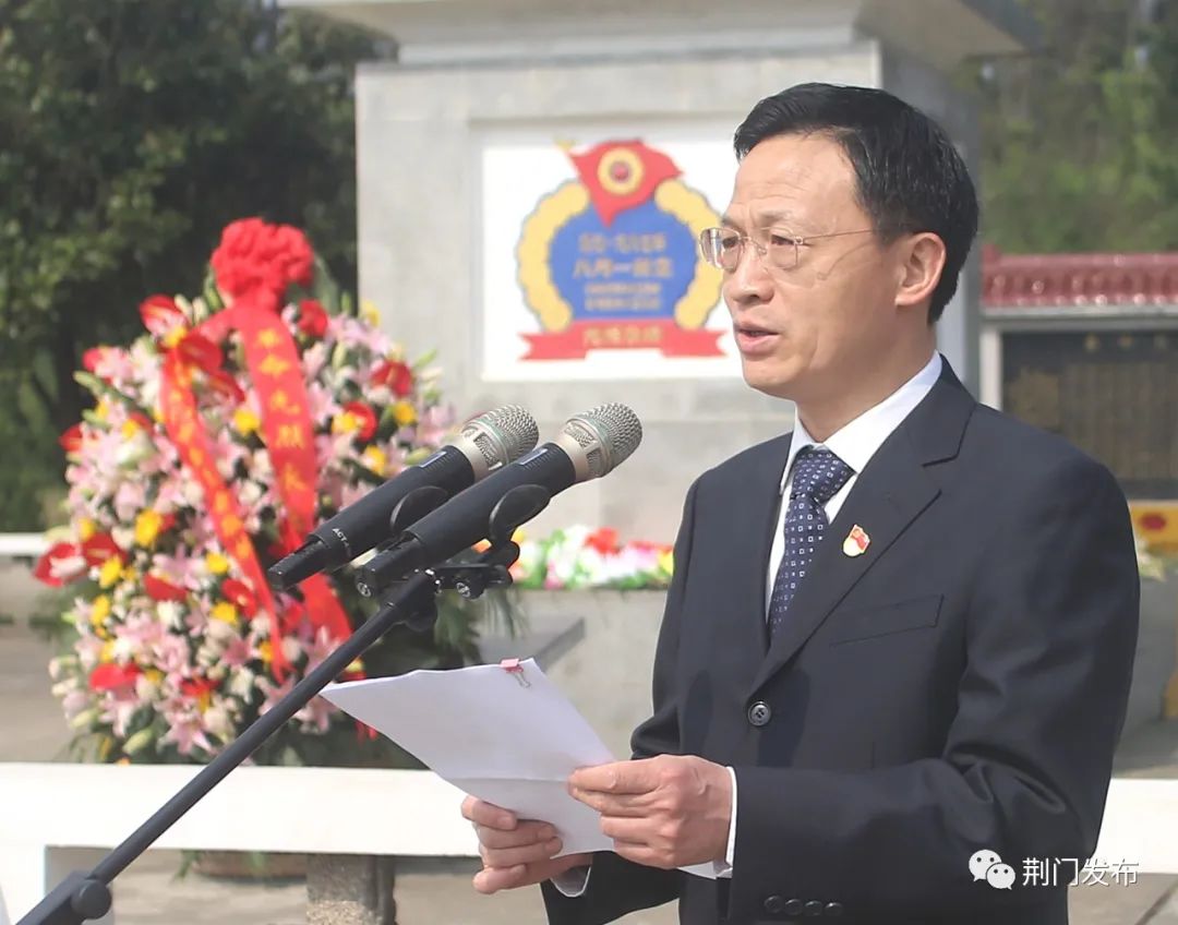 王祺扬在讲话中首先代表市委市政府和300万荆门人民,向为荆门解放、为社会主义革命和建设事业英勇献身的革命烈士,致以崇高的敬意和深切的悼念!他说,北山革命根据地是在董必武、李先念、贺龙等老一辈无产阶级革命家的关怀下,党政军民同心同德、前赴后继,经过20多年艰苦斗争建立起来的。北山革命史就是一部传承红色基因、坚定理想信念的生动教材,广大革命烈士为了革命和建设事业抛头颅、洒热血,用宝贵的生命换来了今天的和平、幸福和繁荣。我们要继承和弘扬革命先烈们坚贞不屈的革命意志、不屈不挠的斗争精神和为共产主义奋斗终身的坚定信念,把革命先烈为之奋斗、为之牺牲的伟大事业薪火相传,奋力推向前进。