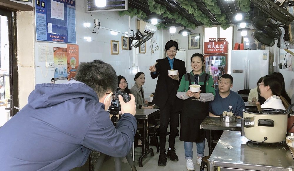 中央广播电视总台欧洲拉美地区语言节目中心意大利语部直播武汉热干面。 通讯员供图