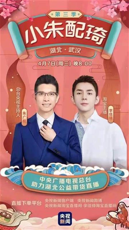 湖北日报讯 (记者黄磊、通讯员杨达、实习生何星莹)还记得曾经带领1亿粉丝“为湖北胖三斤”的淘宝直播王牌组合“小朱配琦”吗?4月7日晚,这出连续剧将迎来第三季!总台央视主持人朱广权和淘宝主播李佳琦第三次直播,相聚武汉助力湖北公益带货直播。