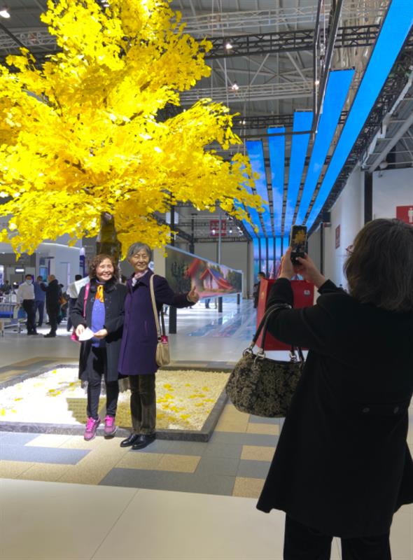 爬满老藤的树干、金黄的银杏叶……走进汉阳馆,一棵约3米高的仿真“汉阳树”,吸引了众多观展市民拍照打卡。