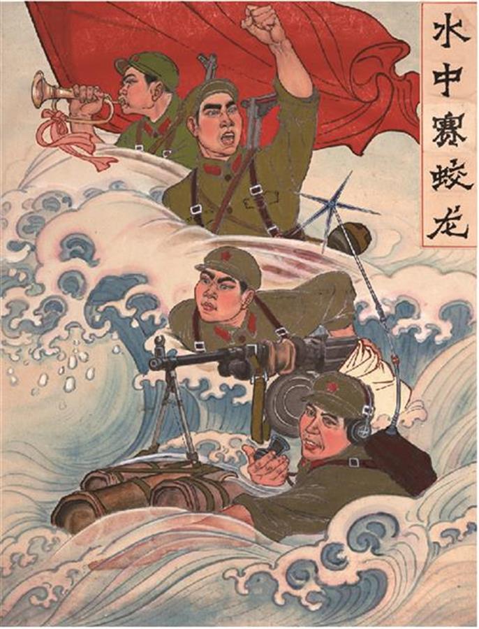 贺飞白 陆上胜猛虎 水中赛蛟龙 纸本 66cm×50cm×2 1964年