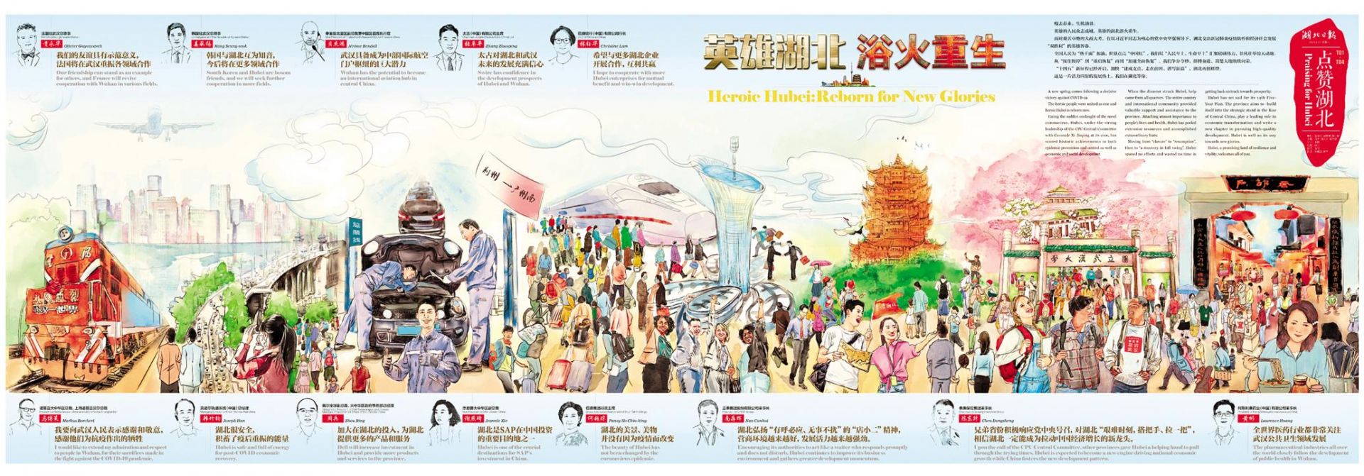 特刊再现湖北疫后重振、浴火重生的奋斗历程。从黄鹤楼到户部巷,从武汉大学到光谷“马蹄莲”,从务工专列到汉欧班列,重启后的湖北加速恢复,烟火气回来了,生产车间轰鸣起来,樱花喜迎八方客。海内外人士为健康湖北、活力湖北点赞鼓劲。