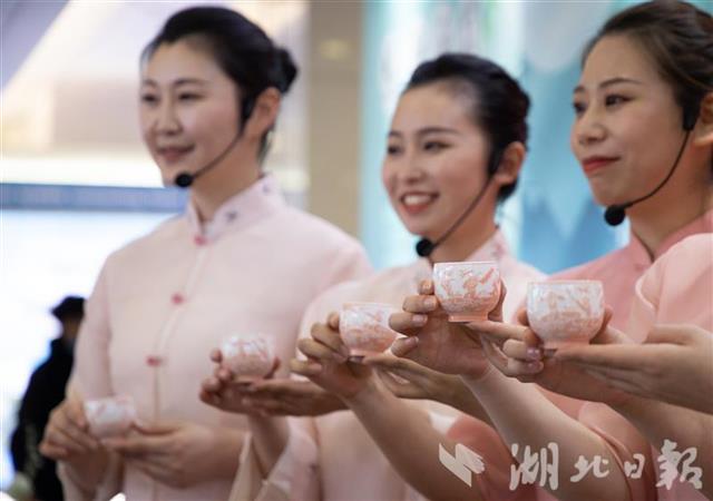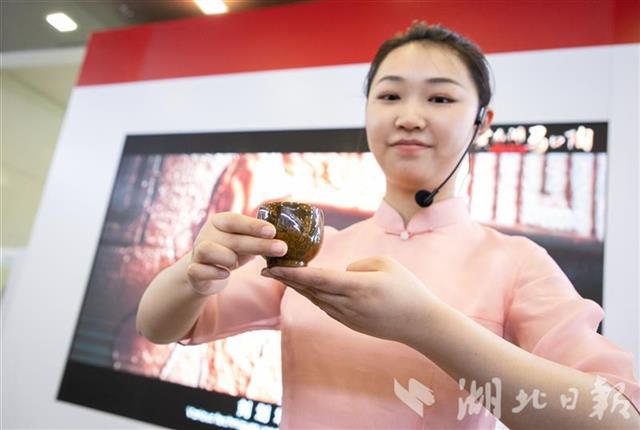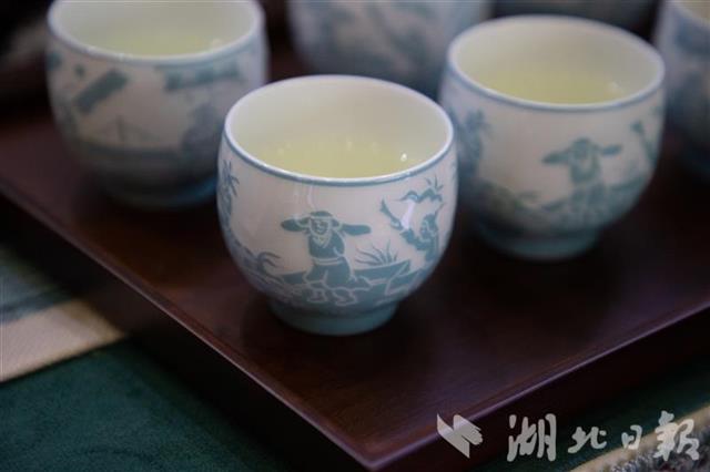 “我手中这款‘状元打马游街’系列陶杯,刻画的是状元中举后被赐马游街的热闹景象,象征着湖北经历大战大考后欣欣向荣的景象。”在茶展品区,湖北省茶业集团茶艺师喻晶用黄龙湖马口陶杯,为外宾沏茶,“湖北茶与湖北陶完美融合,让外宾领略荆楚文化。”