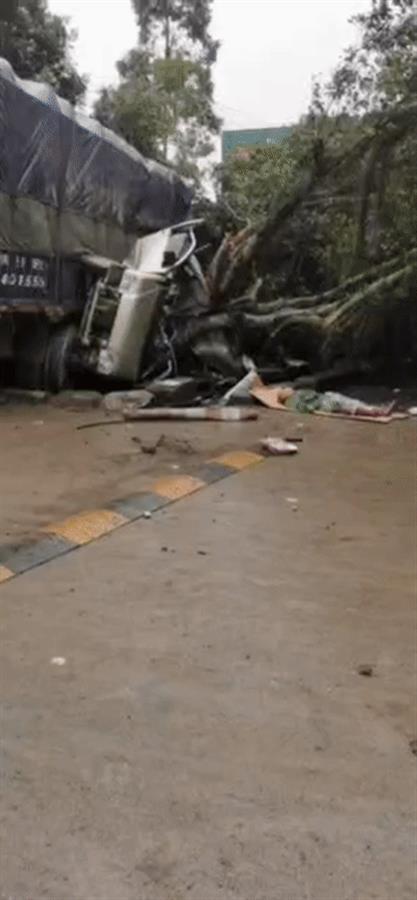 网传视频显示,现场有一辆桂A牌照货车与一辆五菱牌面包车相撞,面包车被货车挤压侧翻,车身受挤压已完全变形。有人躺在路边,生死未明。另一段网传视频显示,现场有急救、消防人员正在现场处置。
