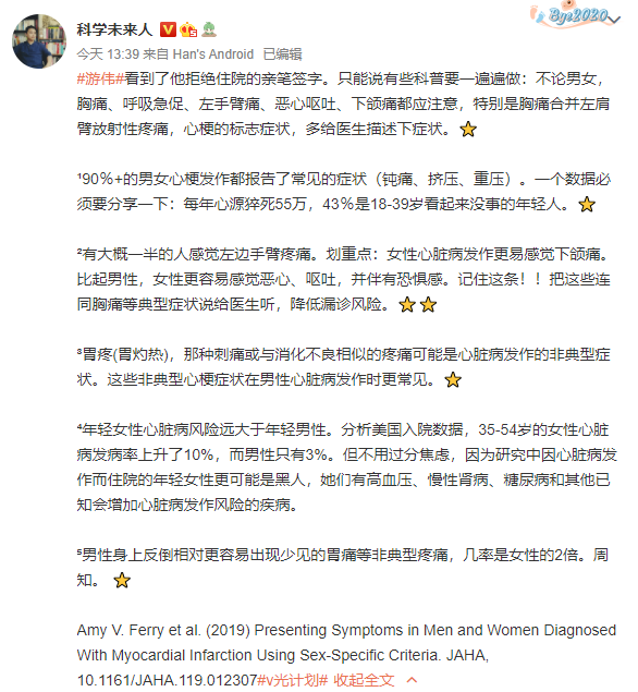 “深夜就诊,说明患者可能已经出现了胸痛等明显症状,这本来就是一个高危提醒。”北京胸科医院心脏中心主任张健告诉健康时报记者,但可惜的是,这位患者没有听取医生的建议,拒绝住院,导致了一场本可以挽回的悲剧。