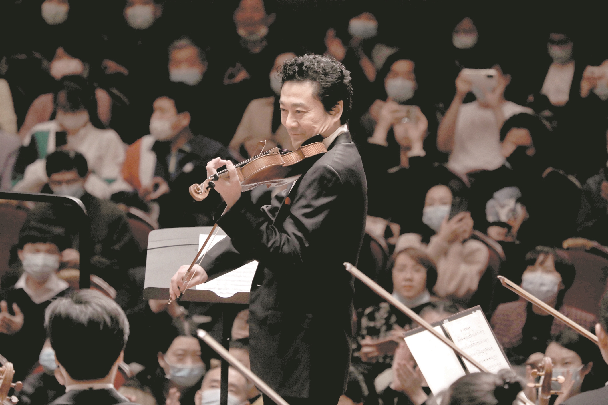 4月13日晚,琴台音乐厅,2021年春节后武汉市内最重头的音乐会如约降临——著名指挥家吕嘉、著名小提琴家吕思清携手国家大剧院管弦乐团来汉,献上于京君谱写的《日新》、赵季平谱写的《第一小提琴协奏曲》和布鲁克纳《A大调第六交响曲》。