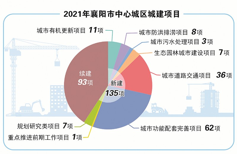 市住建局表示,今年的城建项目包括城市有机更新、防洪排涝、污水处理、生态园林城市建设、道路交通、城市功能配套完善、规划研究、重点推进前期工作研究等八大类以及续建工程,主要是为了补齐城市短板弱项,强化城市功能,改善人居环境,提高城市品质,提高首位度和辐射力,建设宜居、绿色、韧性、智慧、人文襄阳。