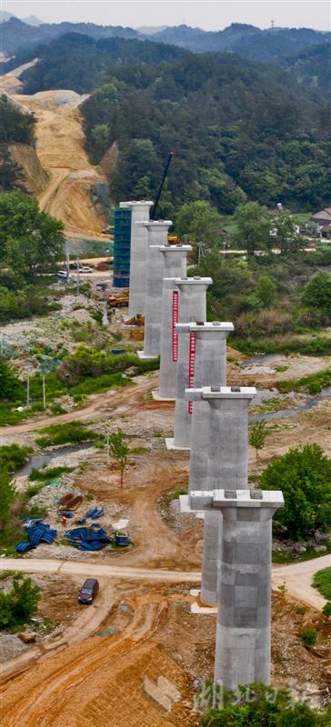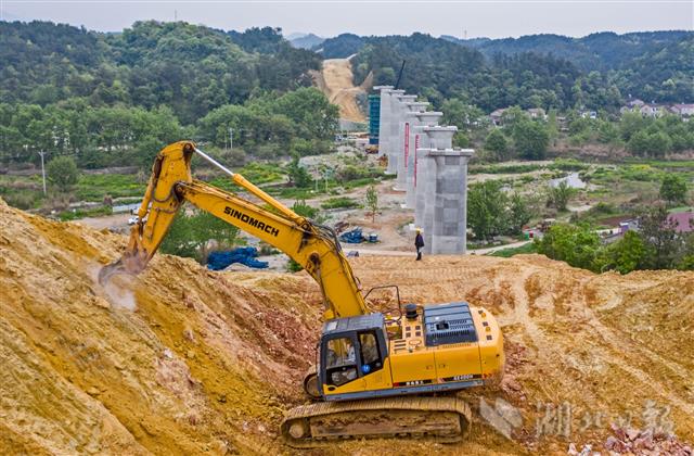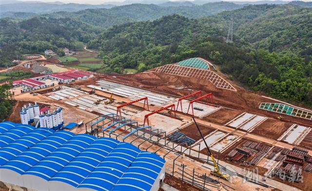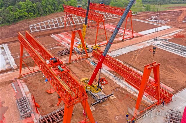 4月14日,位于远安县鸣凤镇双泉村的当远铁路远安站制梁场,巨大的提梁起重机高高耸立,吊车、装载机、混凝土罐车穿梭不停,工人们抓紧时间建设桥梁钢梁厂,其他标段的站场、路基、桥梁、隧道等施工也在如火如荼进行。当远铁路是远安县境内首条铁路,起于焦柳线当阳市岩屋庙车站,止于远安县嫘祖镇广坪村,含桥梁63座、隧道25座,全长65.1公里,总投资39.272亿元,沿线设岩屋庙、干溪、远安、旧县、嫘祖等5座车站。该铁路建成通车后,将与郑渝、焦柳构成“工”字形铁路网,在远安组成内畅外联、四通八达的交通网络,为当地磷化工生产原料和产品提供安全、便捷的运输线路。(湖北日报全媒记者 刘曙松 通讯员 黄海涛 朱丽君 摄)