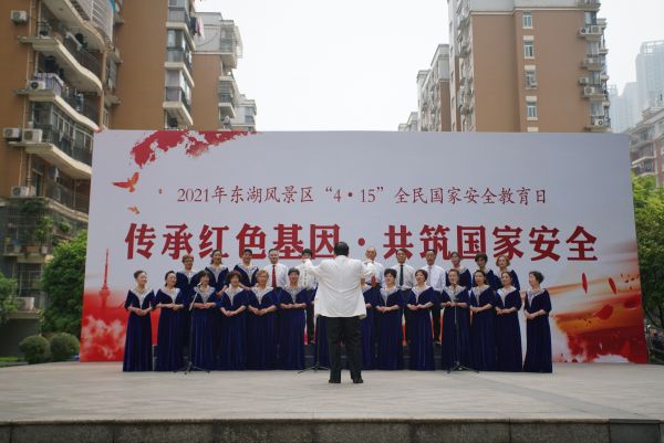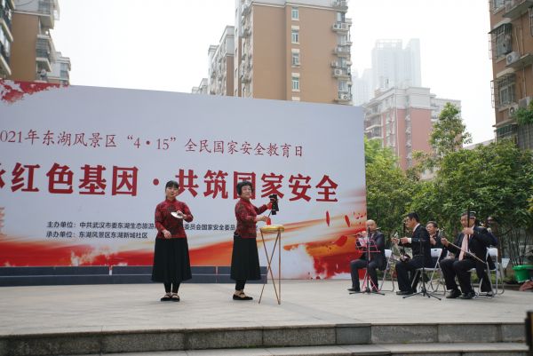 长江日报4月15日讯 传承红色基因,共筑国家安全。4月15日上午,2021年“4·15”全民国家安全教育进社区活动在东湖新城社区拉开帷幕。文艺汇演、发放折页、免费咨询、有奖问答……东湖风景区通过开展立体式、多方位国家安全知识普及活动,提高全区居民防范和抵御安全风险能力,增强居民维护国家安全的责任感和使命感。
