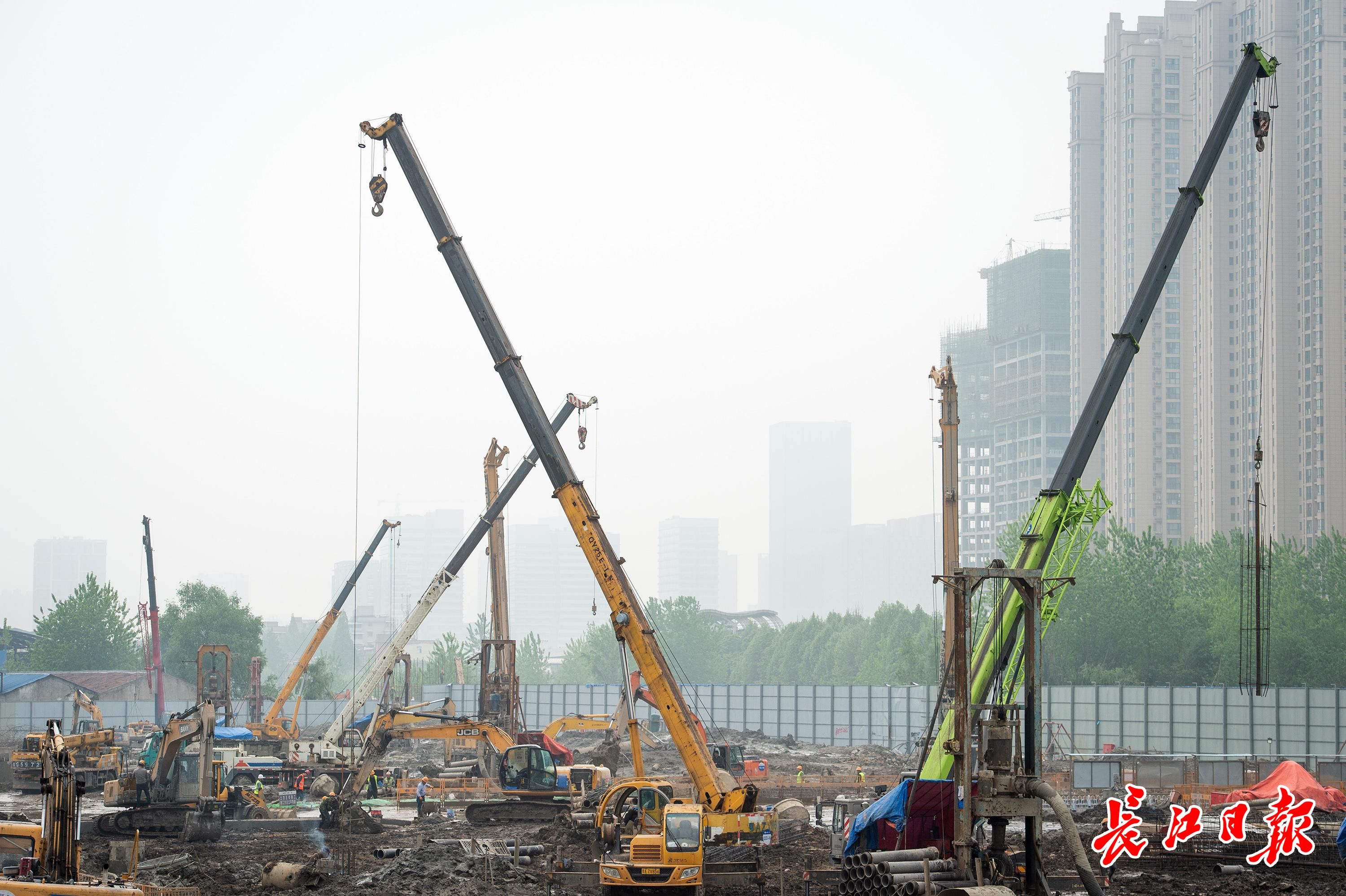 上午,长江日报记者在现场看到,5台挖钻机、11台反循环钻机正在打桩,旁边的吊车正在下放钢筋笼,150余名施工人员在现场忙碌。“项目共有2147根工程桩,截至今天上午8时,已经完成了751根,预计6月底完成工程桩施工。” 施工方中国一冶建安公司舵落口村还建房项目工程部长汪志洋说,最深的工程桩是主楼桩,因为要入岩,所以深入地下60多米。接下来,将同时进行支护结构和止水帷幕施工。