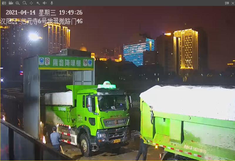 监控镜头显示的渣土车出场冲洗现场。通讯员梅绘军 姜荣兵 供图