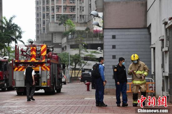 4月16日,香港秀茂坪宝达邨达喜楼5楼有单位凌晨发生火警,消防员接报后赶赴现场把火扑灭。火灾致4人死亡2人受伤。早上,消防员及警员于达喜楼继续调查事件。图为消防员于现场了解情况。中新社记者 李志华 摄中新社记者 李志华 摄