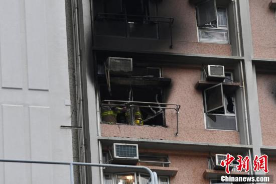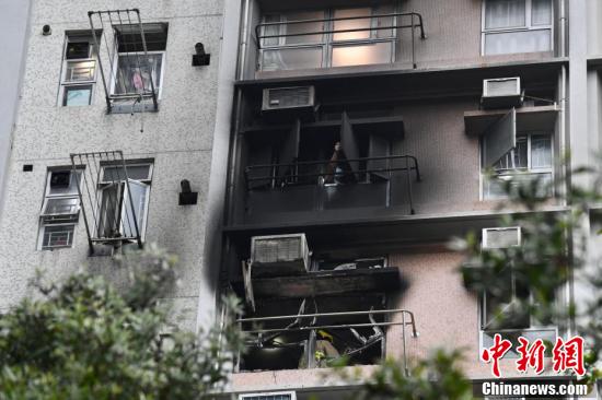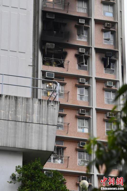 4月16日,香港秀茂坪宝达邨达喜楼5楼有单位凌晨发生火警,消防员接报后赶赴现场把火扑灭。火灾致4人死亡2人受伤。早上,消防员及警员于达喜楼继续调查事件。中新社记者 李志华 摄